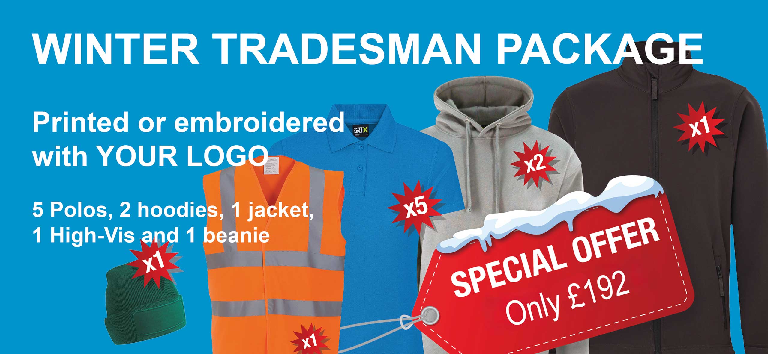 We have some starter packages which are very affordable. See our Winter/Summer Tradesman packages, Chef’s package, Hospitality package, Healthcare package, Scrubs package and Winter/Summer Office Clothing package. Prices vary slighty with print and embroidery but provide all the essentials personalised with your company logo.